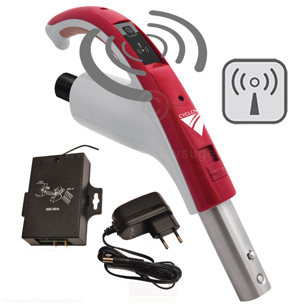 Velger du varianten med avtakbart håndtak, er det enklere å henge opp slangen etter bruk. Endemuffen som settes inn i veggen passer til de aller fleste sugekontakter og starter/ stopper maskinen når den settes inn / tas ut. Håndtaket kan også leveres med trådløs AV-PÅ styring. Da følger det også med en mottaker som plasseres ved sentralstøvsugeren. (Passer til alle merker.)
